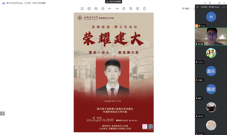 沉舟侧畔,千帆竞发。5月25日,研工部在线上开展第四期考博经验分享会。本期分享会邀请了我校1位成功考取中国科学技术大学的博士生分享考博经历。