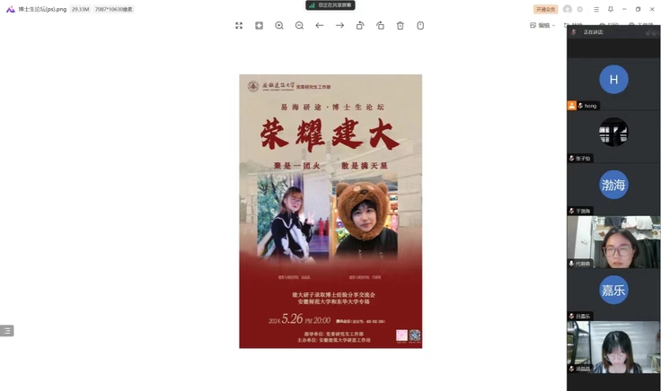 沉舟侧畔,千帆竞发。5月26日,研工部在线上开展第五期考博经验分享会。本期分享会邀请了我校2位成功考取东华大学和安徽师范大学的博士生们分享考博经历。