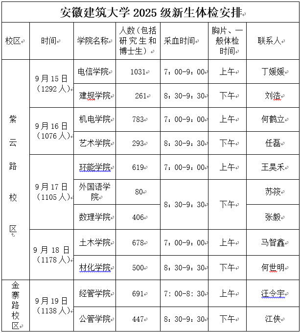 1.各学院于9月12日到所在校区校医院领取体检表,体检对象为新生(2025级本科生、所有研究生和博士生)注:入学未交体检费的同学请及时按学校财务处要求交费;