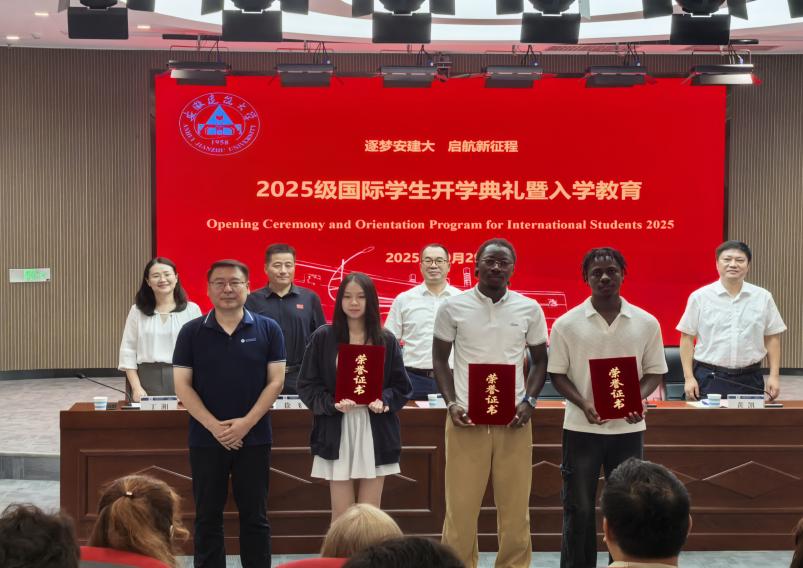 典礼特别设置了2024级国际学生表彰环节。 “跨文化之星奖” “学术卓越奖”“校园友谊大使奖”“文体贡献奖”四项荣誉的颁发,不仅是对优秀国际学子过去一年努力的高度肯定,也为新生们树立了身边的学习榜样。简朴而庄重的颁奖仪式将现场气氛推向高潮,象征着安建大国际学生教育中鼓励全面发展、弘扬积极向上的育人导向。